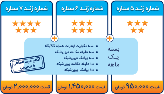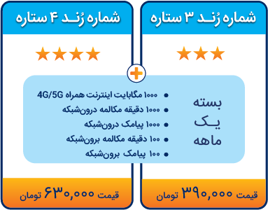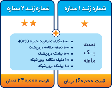 برای خرید شمارههای رند شاتل موبایل به همراه بستههای یکماهه، روی بسته موردنظر کلیک کنید: